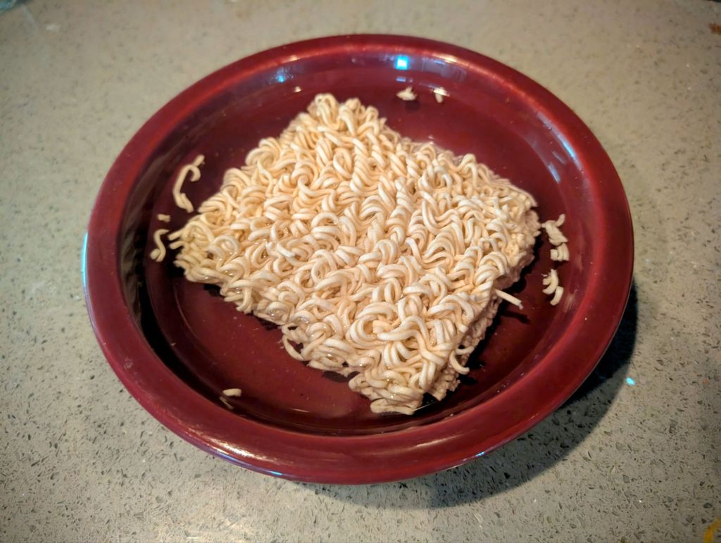 - Add tap water to the bowl until the noodles are just submerged/floating