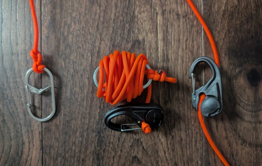 As of this writing, the CamJams, carabiners, and 100ft of quality paracord cost around $40.